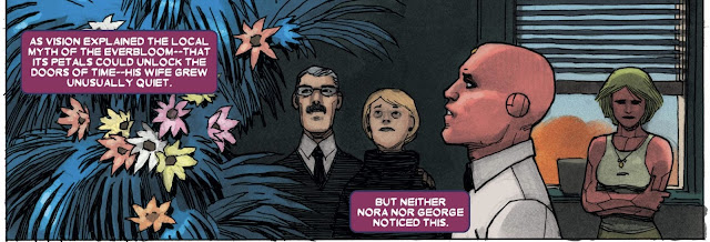 While most of the items' symbolic significance is not immediately obvious, the Everbloom is the the most overt. The Everbloom is a gift from Vision's ex-wife Scarlet Witch, which casts an obvious wedge between Vision and his current wife Virginia. This is silent divide informs the two's relationship in the entire story.