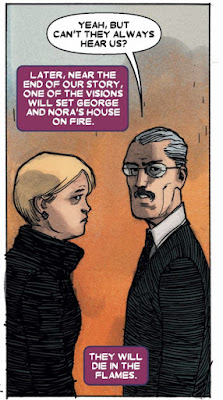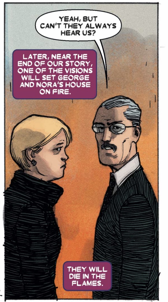 The dramatic climax to the neighbours meeting the Visions scene ends when the seemingly omnipotent narrator describes in painful detail how George and Nora die.