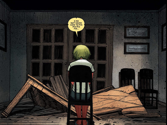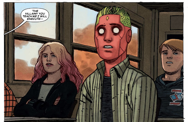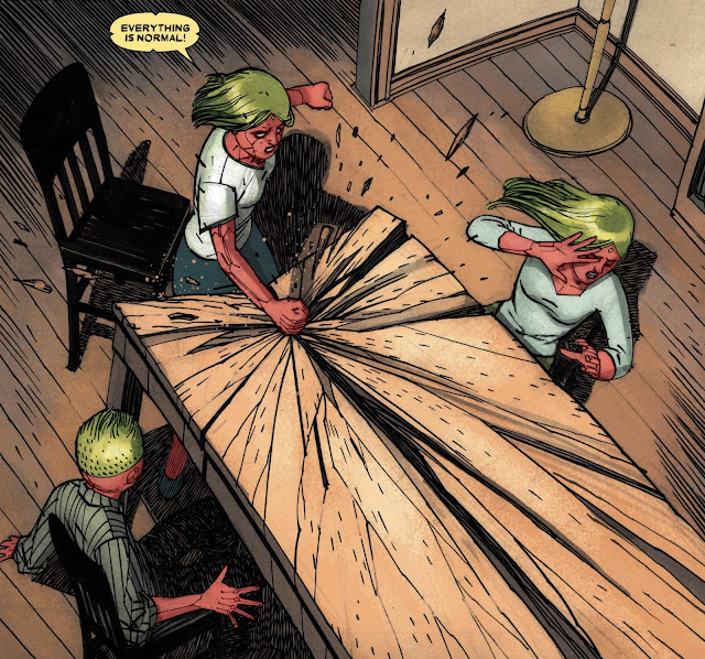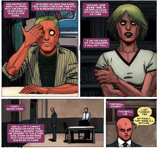 This is probably the turning point for Vision's character arc. Initially, he was ignorant of the devastating actions of his family. Now he's made a choice that is clouded in self-interest that makes him complicit. It's a wonderful character turn to see a more insidious Vision. Meanwhile, we see the family grow further and further apart as they are developing their own paths and personal perspectives.