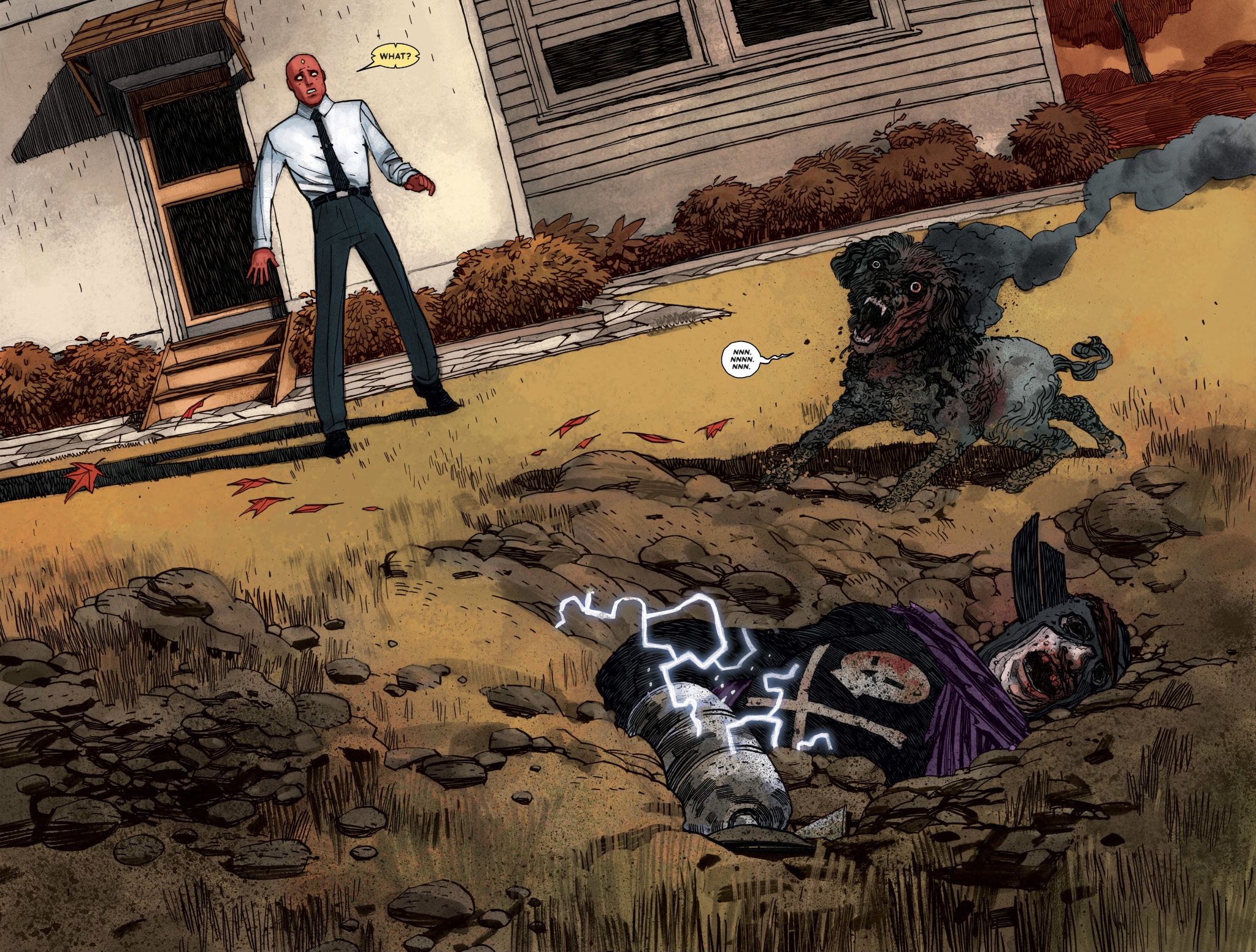 His internal monologue even states how his family does not have an agenda or a plan, they just simply want to exist- probably the most basic aspect of being normal. However, now that Vision is now attempting to create normalcy, he takes the dog's brainwaves and then created a synthezoid dog for his children.